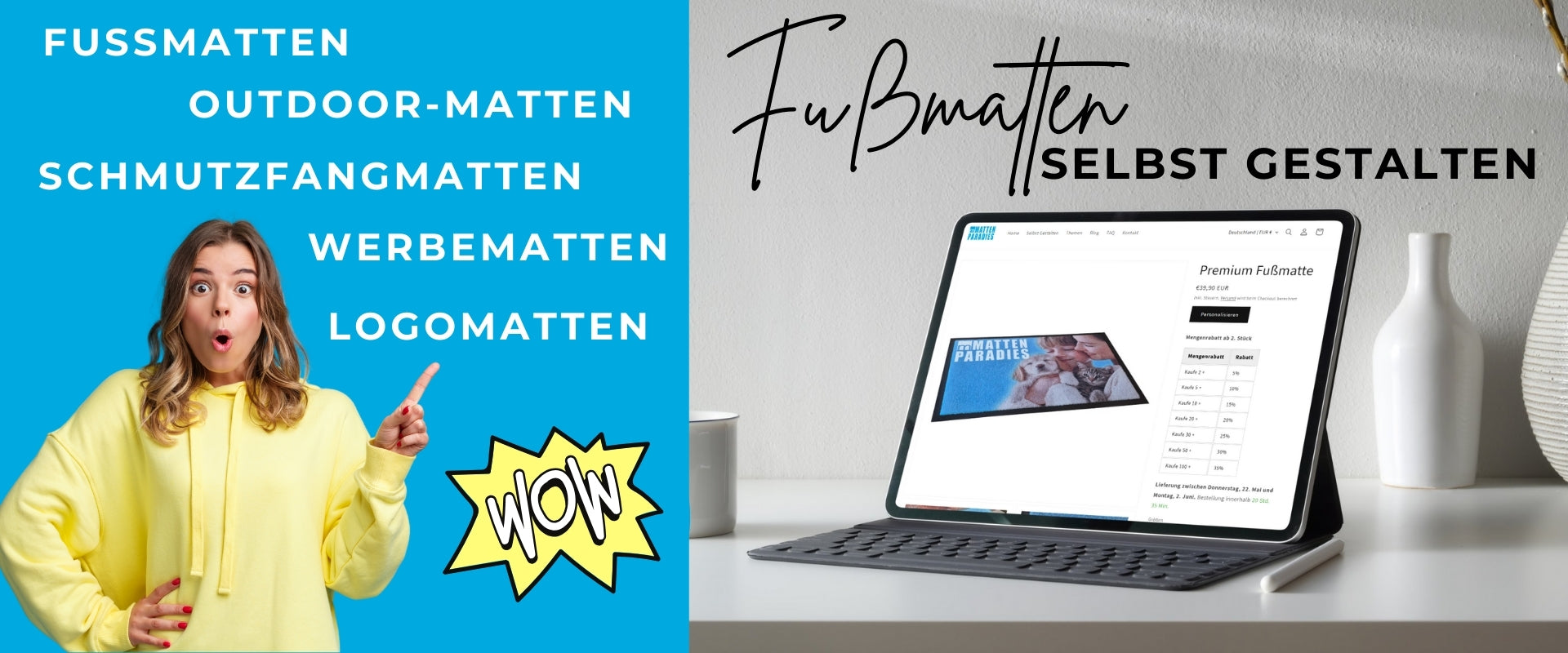 Ob Sonderformen, Konturschnitte, Matten mit oder ohne Rand – wir realisieren maßgeschneiderte Lösungen ganz nach Ihrem Bedarf. Auch großformatige Teppiche für XXL-Flächen, Bühnen, Events, Messen, TV-Produktionen, Theater sowie für feste Verlegungen in Objekten wie Büros, Hotels oder Fitnessstudios sind auf Anfrage erhältlich. Ebenso bieten wir Vinyl- und Fotoböden an. Für jeden Einsatz finden wir die passende Matte und den passenden Bodenbelag.